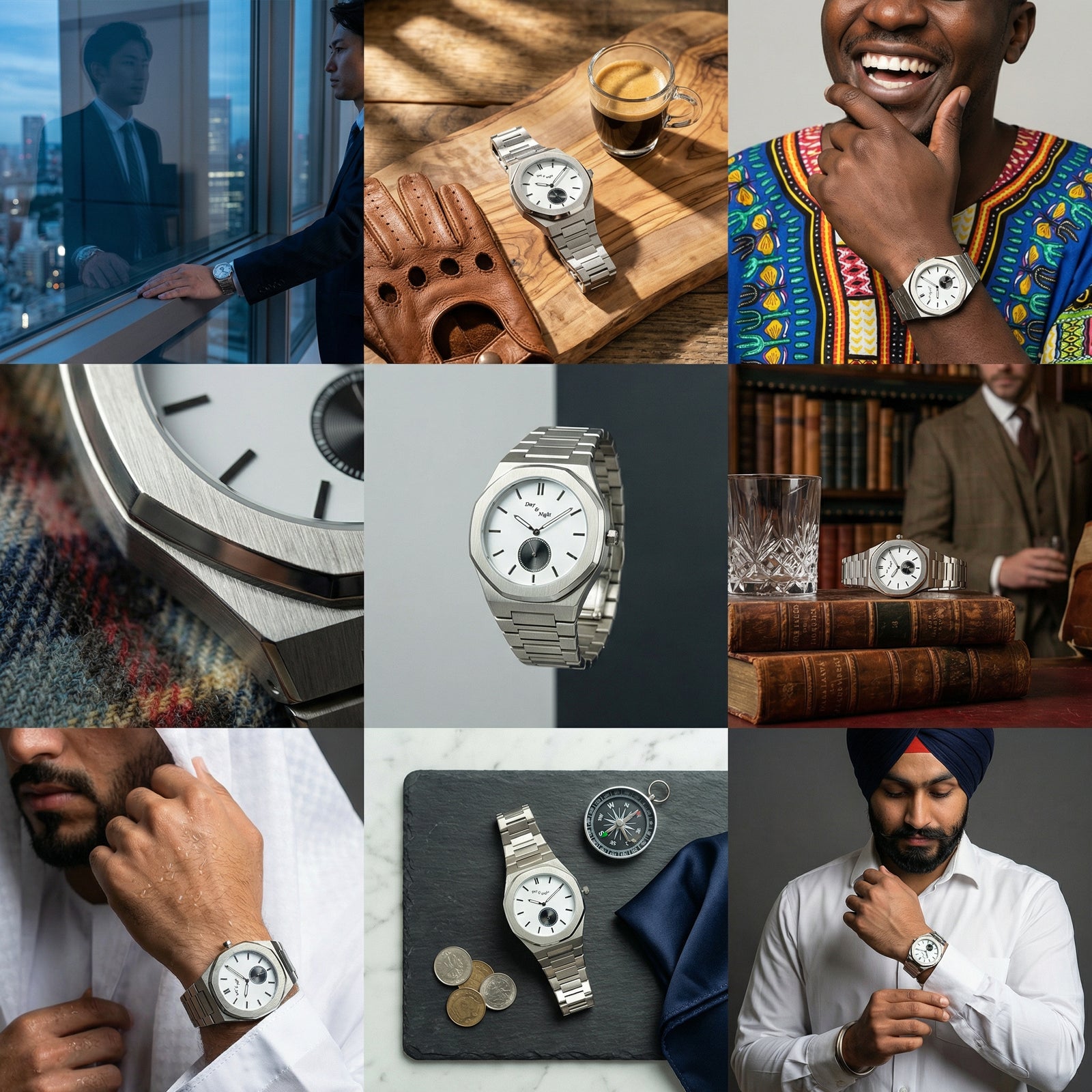 Day and Night Watch Co silver dial mens bracelet watch The Xerxes